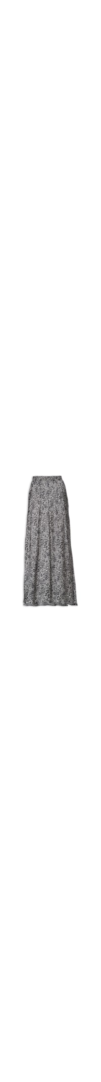 A saia preta é confeccionada em tecido leve sem elasticidade. A peça solta ao corpo possui cintura alta, cós com elástico embutido, estampa abstrata e comprimento midi.