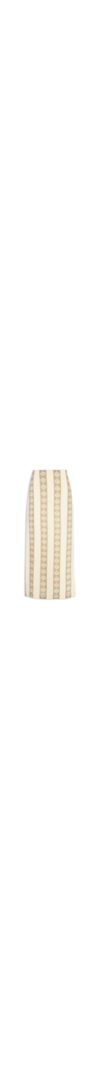 A saia bege é confeccionada em tecido leve com toque de linho sem elasticidade. A peça solta ao corpo possui cintura alta, estampa figurativa de conchas em cor contrastante, forro, fendas laterais, comprimento midi e fechamento lateral por zíper invisível.