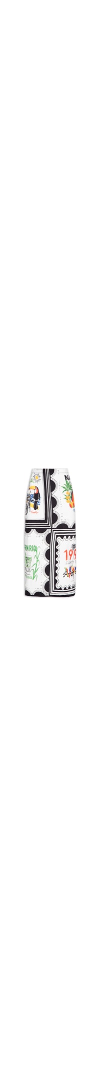 A saia branca é confeccionada em malha com superfície canelada e média elasticidade. A peça solta ao corpo possui cintura alta, cós com elástico embutido, mix de estampas em cores contrastantes e comprimento midi.