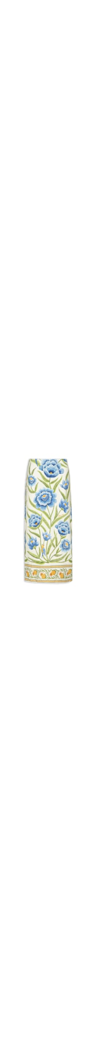 A saia azul é confeccionada em malha com superfície canelada alta elasticidade. A peça justa ao corpo possui cintura alta, mix de estampa floral em tons contrastante, elástico embutido no cós e comprimento midi.