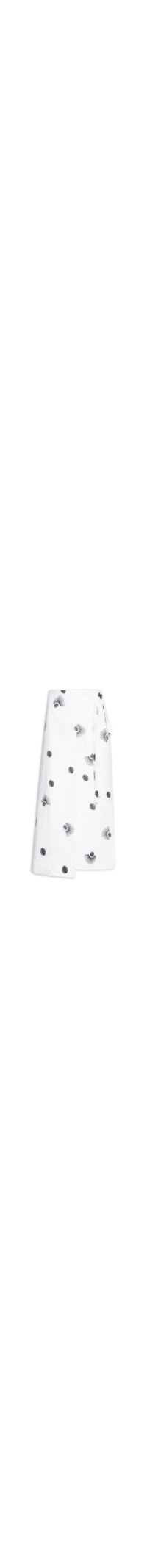 A saia branca é confeccionada em linho sem elasticidade. A peça solta ao corpo possui cintura alta, recorte frontal sobreposto com tira estendida, recortes frontais e posteriores, bordados em cor contrastante e comprimento midi.