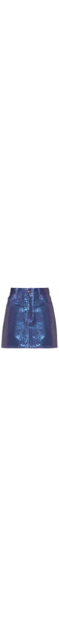 A saia roxa é confeccionada em tecido encorpado sem elasticidade. A peça solta ao corpo possui cintura média, passantes aplicados no cós, five pockets*, recorte posterior, tag da marca aplicada no cós posterior, fechamento por zíper e botão e comprimento curto.