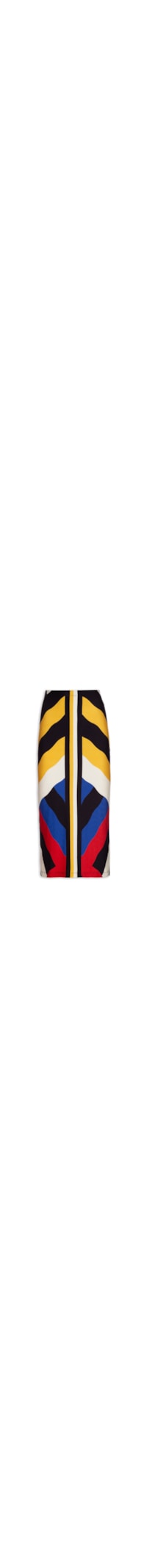 A saia bege é confeccionada em malha com alta elasticidade. A peça justa ao corpo possui cintura alta, padronagem listrada em tons contrastante, elástico embutido no cós e comprimento midi.