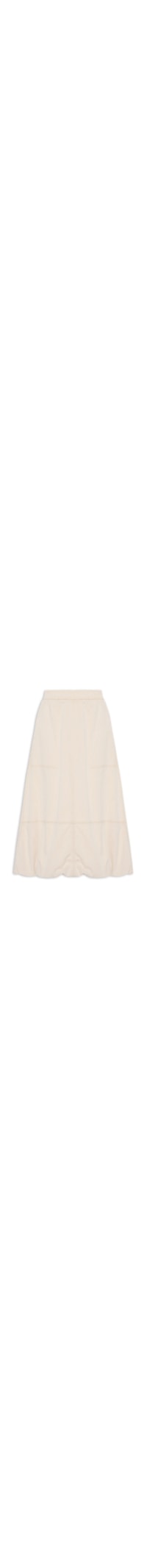 A saia bege é confeccionada em sarja com baixa elasticidade. A peça solta ao corpo possui cintura alta, cós com elástico embutido, recortes posteriores e frontais, bolsos posteriores, bolsos frontais modelo faca e comprimento midi.