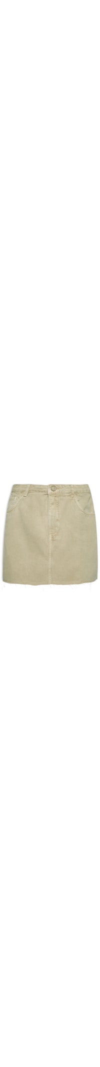 A saia verde é confeccionada em sarja sem elasticidade. A peça justa ao corpo, possui cintura alta, cós com passantes aplicados, five pockets*, tag da marca aplicada ao bolso posterior, acabamento por corte a fio, comprimento curto e fechamento frontal por zíper e botão.