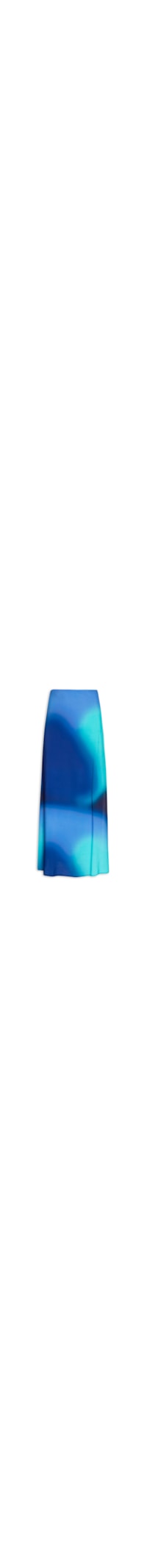 A saia azul é confeccionada em tecido leve sem elasticidade. A peça solta ao corpo, possui cintura alta, fenda lateral, estampa tie dye em tons contrastante, comprimento longo e fechamento lateral por zíper invisível.