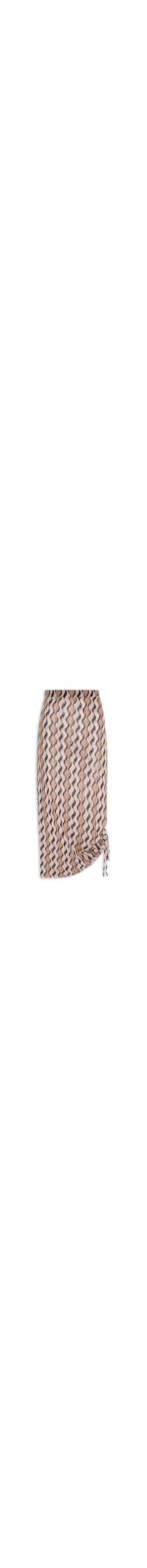 A saia marrom é confeccionada em tule com alta elasticidade. A peça justa no corpo possui cintura alta, cordão embutido na altura da barra para ajuste com detalhe de franzido, tecido duplo com leve transparência, estampa abstrata em cores contrastantes e comprimento midi. Acompanha forro de modelo hot pants na cor off white com elástico embutido na cintura.