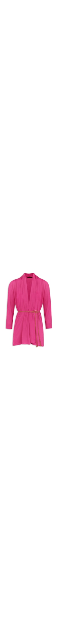A saida rosa é confeccionada em tecido leve com superfície texturizada. A peça solta ao corpo possui detalhes de franzidos nos ombros, mangas 3/4 e comprimento curto. Acompanha cordão torcido com detalhe metalizado ajustável para uso opcional.