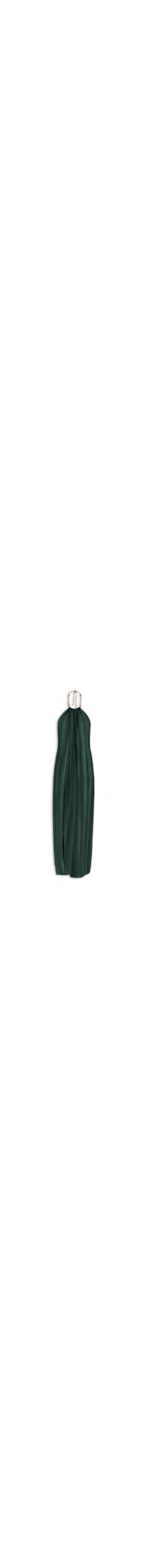 A saída verde é confeccionada em tecido leve com toque texturizado sem elasticidade. A peça solta ao corpo de modelo frente única possui decote frontal halter e posterior em U, alças finas em formato trançado de corda com resina, fenda frontal, transparência, padronagem em listras, comprimento longo e fechamento posterior por amarração na nuca.