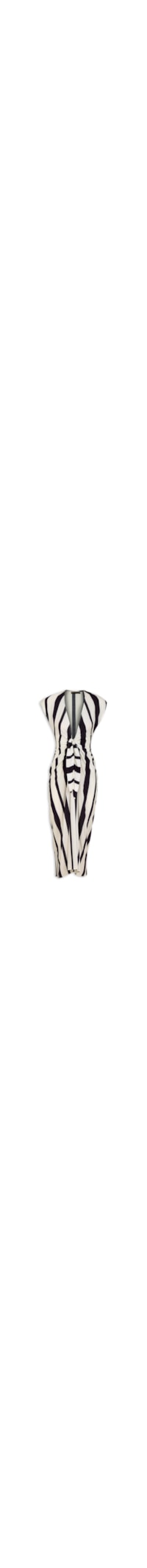 A saída branca é confeccionada em tecido leve. A peça solta ao corpo possui mangas curtas, faixas alongadas na parte frontal para amarração, padronagem listrada em cor contrastante e comprimento midi.
