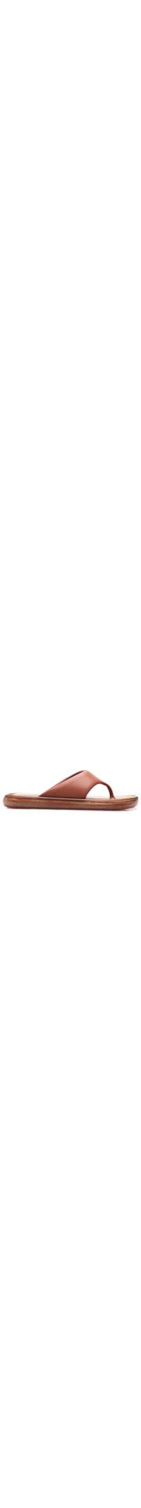 A sandália marrom é produzida em Melflex®. A peça de modelo chinelo possui bico arredondado, tiras grossas frontais, palmilha macia com o nome da marca em baixo relevo, solado emborrachado com camada sobreposta transparente.