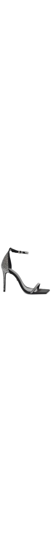 A Sandália Preta é Produzida Em material Sintético. A Peça Possui Bico Quadrado, Tiras Finas, Salto Alto Fino, Aplicação De Strass, Palmilha Macia Com Nome Da Marca Em Baixo-relevo, Solado Laqueado E Fechamento Lateral Por Fivela.
