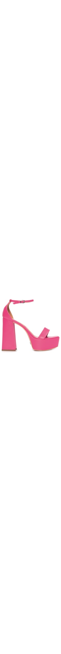 A sandália rosa é produzida em couro. A peça de modelo meia pata possui bico quadrado, tira média na parte frontal, salto alto modelo bloco, palmilha macia, solado emborrachado, acabamento pespontado e fechamento lateral por fivela ajustável.