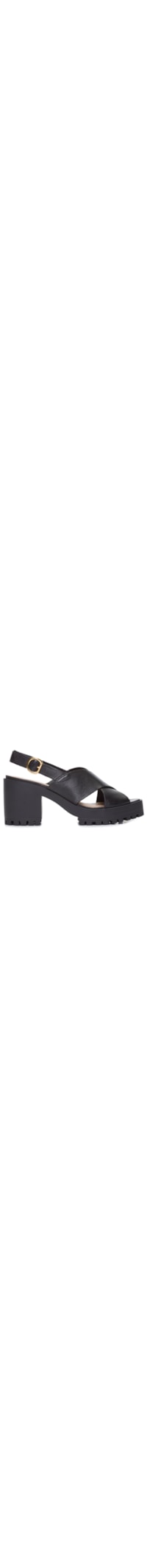 • A sandália preta é produzida em couro. A peça possui tiras transpassadas, salto bloco, solado tratorado e fechamento por fivela.