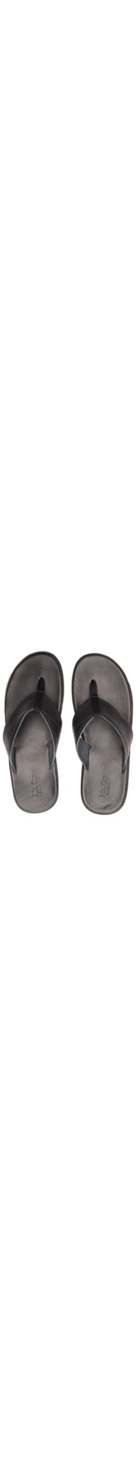 A sandália preta é produzida em couro. A peça possui bico arredondado, tiras frontais largas, palmilha macia com nome da marca em relevo, solado emborrachado e acabamento pespontado.