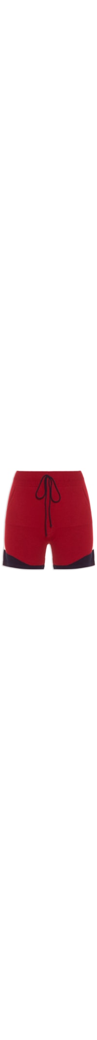 O short vermelho é confeccionado em tricot. A peça possui cintura alta, cós elástico, cordão decorativo aplicado na parte frontal, bolsos frontais, recortes em cores contrastantes, shape justo, caimento reto, comprimento curto e acabamento canelado.