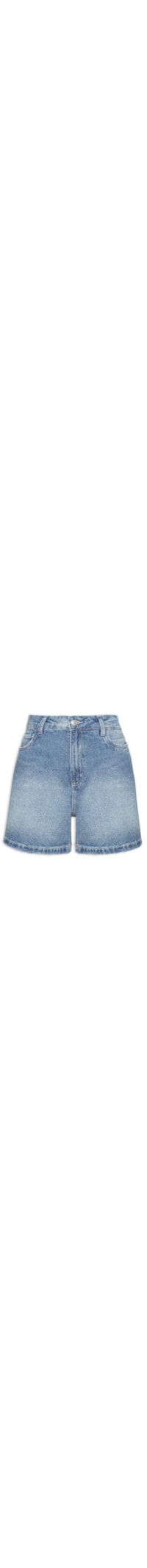 O short azul é confeccionado por sarja com lavagem em jeans sem elasticidade. A peça solta ao corpo possui cintura alta, passantes aplicados no cós, five pockets*, recorte posterior, tag da marca metalizada aplicada no bolso posterior, fechamento frontal por zíper e botão.