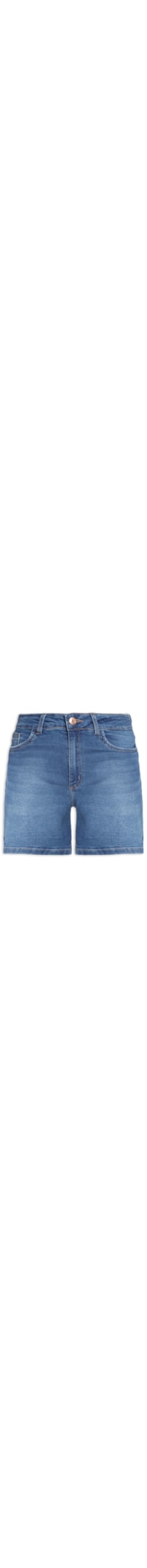 O short azul é confeccionado em sarja com lavagem jeans com baixa elasticidade. A peça justa ao corpo possui cintura média, cós com passantes aplicados, five pockets*, recorte posterior, tag da marca aplicada na altura do cós posterior, comprimento curto e fechamento frontal por botão e zíper.