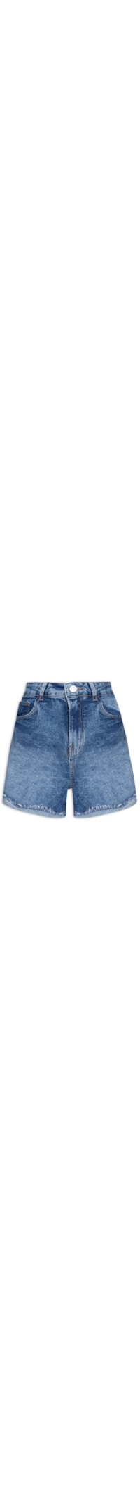 O short azul é confeccionado em sarja com lavagem jeans sem elasticidade. A peça solta ao corpo possui cintura alta, cós com passantes para cinto, *five pockets, barra italiana com acabamento desfiado, fechamento frontal por zíper e botão.
