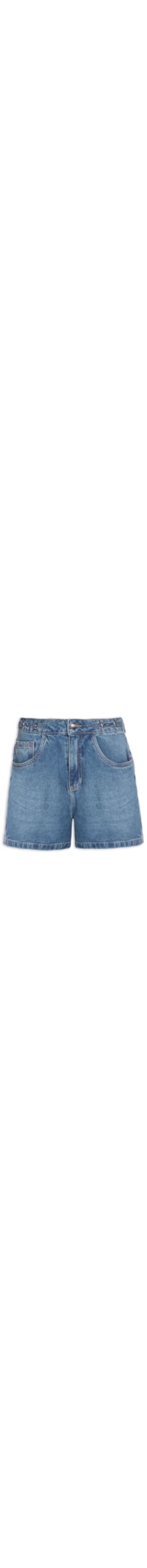 O short azul é confeccionado em sarja com lavagem jeans sem elasticidade. A peça de modelo boyfriend* possui cintura média, cós com passantes e aplicação de ferragens metálicas decorativas na parte frontal, five pockets**, tag aplicada na parte posterior do cós, recorte posterior, comprimento curto e fechamento frontal por zíper e botão.