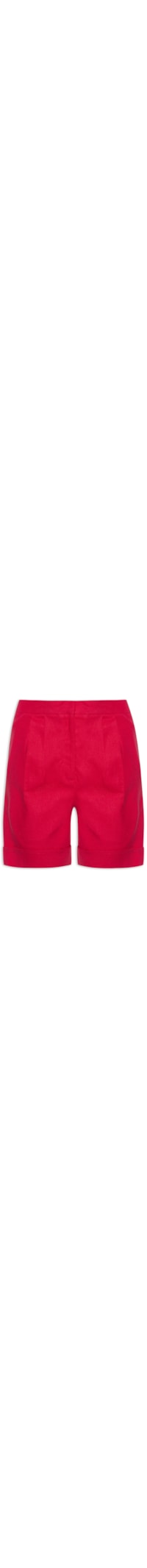 O short vermelho é confeccionado em tecido leve com toque de linho e baixa elasticidade. A peça solta ao corpo possui cintura alta, pregas frontais, bolsos frontais embutidos, pences posteriores, bolso posterior decorativo, barra italiana, comprimento curto e fechamento frontal em zíper e colchetes.
