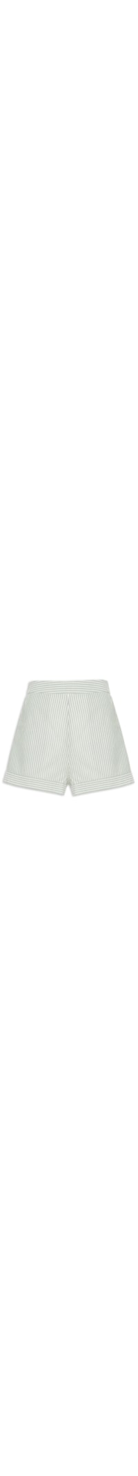 O short verde é confeccionado em tecido leve sem elasticidade. A peça solta ao corpo possui cintura alta, cós com elástico embutido na parte posterior, bolsos frontais de modelo faca, padronagem listrada em cor contrastante e comprimento curto.