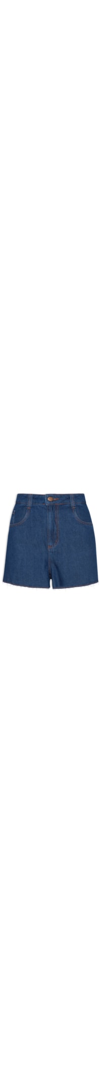 O short azul é confeccionado em sarja com lavagem jeans e sem elasticidade. A peça solta ao corpo possui cintura alta, cós com passantes e tag da marca aplicada na parte posterior, five pockets*, barra desfiada, comprimento curto e fechamento frontal em zíper e botão.