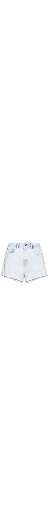 O short azul é confeccionado em sarja com lavagem em jeans sem elasticidade. A peça justa ao corpo possui cintura alta, cós com passantes aplicados, five pockets*, recortes na parte posterior, tags da marca aplicadas no cós e no bolso posterior, barra com acabamento em corte à fio, comprimento curto e fechamento frontal por botão e zíper.