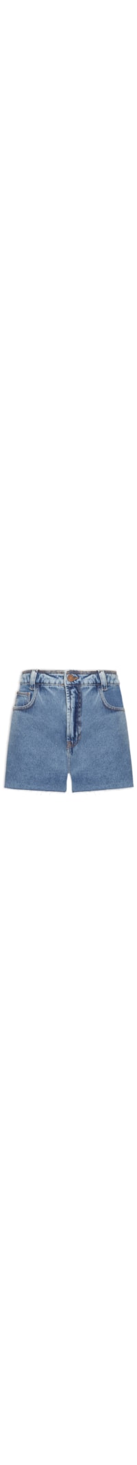 O short azul é confeccionado em sarja com lavagem jeans sem elasticidade. A peça justa ao corpo possui cintura alta, cós com passantes aplicados, five pockets*, tag com o nome da marca aplicado no cós posterior em tom contrastante, barra com pequena fenda e corte a fio, comprimento curto e fechamento frontal em zíper e botão.
