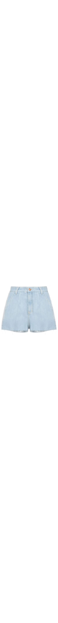 O short azul é confeccionado em sarja com lavagem jeans sem elasticidade. A peça solta ao corpo possui cintura alta, cós com passantes, dois bolsos frontais de modelo faca, pregas frontais, bolsos posteriores embutidos, recorte posterior, barra cortada a fio, comprimento curto e fechamento frontal por botão e zíper.