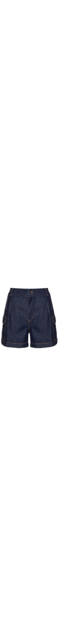 O short azul é confeccionado em sarja com lavagem jeans sem elasticidade. A peça possui cintura alta, cós com passantes aplicados, bolsos faca frontais, pregas frontais, bolsos utilitários laterais, bolsos posteriores embutidos, tag metalizada da marca aplicada no bolso posterior, comprimento curto e fechamento frontal por zíper e botão.
