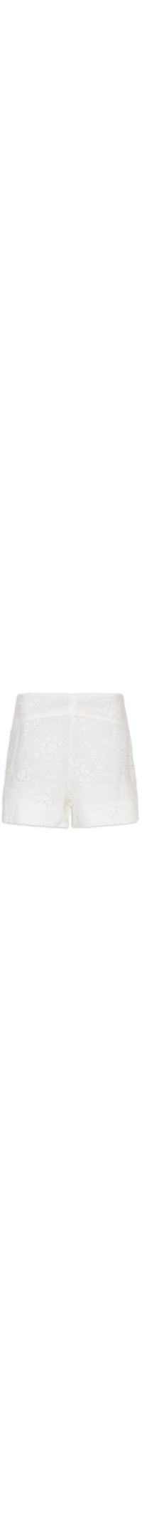 O short branco é confeccionado em laise sem elasticidade. A peça solta ao corpo possui cintura alta, recorte frontal e posterior, forro e barra arredondada.