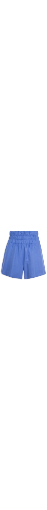 O short azul é confeccionado em tecido leve com toque de linho. A peça possui cintura alta, cós com elástico embutido, recortes e detalhe de franzido, bolsos frontais modelo faca, bolso posterior, comprimento curto, shape solto, caimento reto e acabamento pespontado.