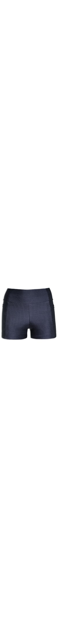 O short azul marinho é confeccionado em Jacquard PRD com superfície cirrê. A peça possui cintura alta, bolsos laterais, tag emborrachada da marca em cor contrastante aplicada na parte posterior e shape justo.