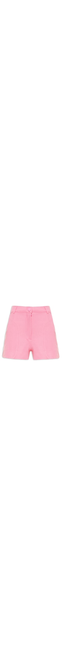 O Short rosa é confeccionado em malha. A peça possui cintura alta, passantes aplicados, bolsos frontais decorativos com tarraxas aplicadas, recortes frontais e posteriores, shape justo e fechamento frontal por zíper e botão de pressão.