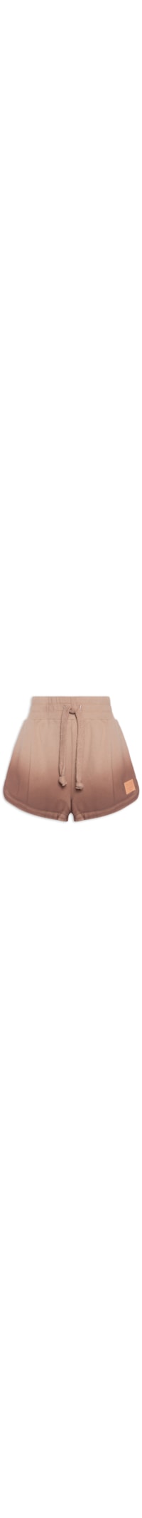 O short marrom é confeccionado em moletom. A peça possui cintura alta, cós elástico com cordão embutido para ajuste, bolsos frontais, fendas laterais, estampa escrita aplicada na parte frontal em cor contrastante, efeito degradê, shape solto, caimento reto e acabamento pespontado.