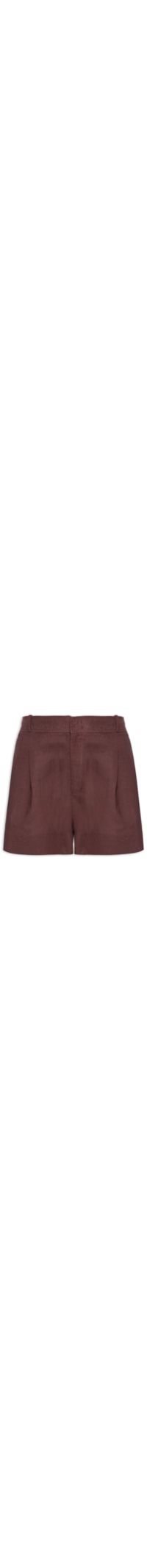 O short marrom é confeccionado em linho misto sem elasticidade. A peça solta ao corpo possui cintura alta, cós com passantes aplicados, bolsos frontais modelo faca, detalhe de pregas na parte frontal, comprimento curto, acabamento pespontado e fechamento frontal por zíper e colchetes.