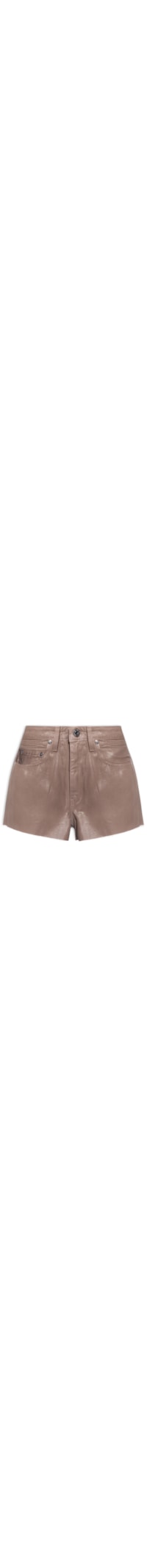 O short marrom é confeccionado em sarja resinada sem elasticidade. A peça solta ao corpo possui cintura média, cós com passantes e tag da marca bordada na parte posterior, recorte posterior, logo da marca aplicado em metal na parte posterior, five pockets* com rebites frontais, barras com acabamento em corte à fio e fechamento frontal por botão e zíper.