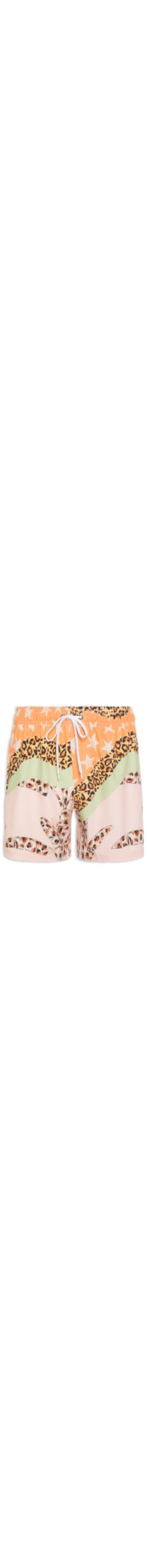 O short amarelo é produzido em tactel. A peça possui cintura média, cós elástico com cordão embutido para ajuste, bolsos frontais modelo faca, tag da marca aplicada na parte posterior, mix de estampas em cor contrastante, bolso posterior com aba sobreposta e fechamento por velcro, forro em mesh, shape solto, caimento reto, comprimento curto e acabamento pespontado.