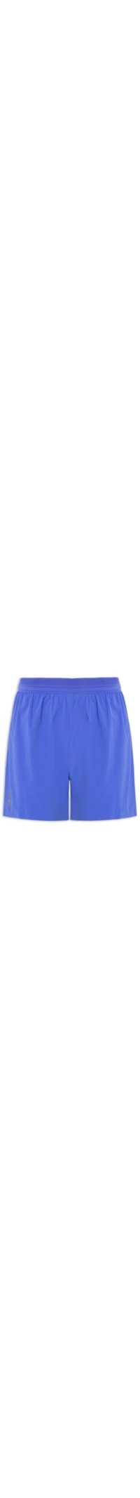 O short azul é confeccionada em malha leve de alta elasticidade. A peça solta ao corpo possui cós em elástico, pequenas fenda laterais, logo fa marca aplicado em material refletivo na parte frontal, forro em formato de cueca na cor preta e tag da marca aplicada na parte posterior.