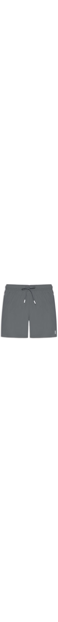 O short cinza é confeccionado em tactel sem elasticidade. A peça solta ao corpo possui cintura média, cós com elástico e cordão embutidos, bolsos frontais, bolso posterior com fechamento por velcro, nome da marca aplicado na parte frontal na cor branca, frisos laterais em cores contrastantes e comprimento curto.