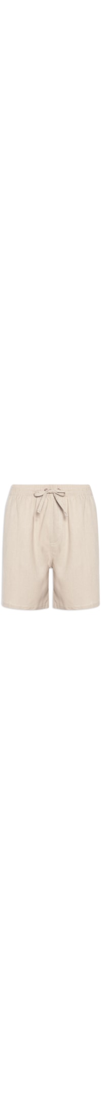 O short bege é confeccionado em linho misto sem elasticidade. A peça solta ao corpo possui cintura média, cós com elástico e cordão embutidos para ajuste, bolsos frontais embutidos, bolso posterior com fechamento por velcro e aba sobreposta, tag da marca em cor contrastante aplicada na parte posterior e comprimento curto.