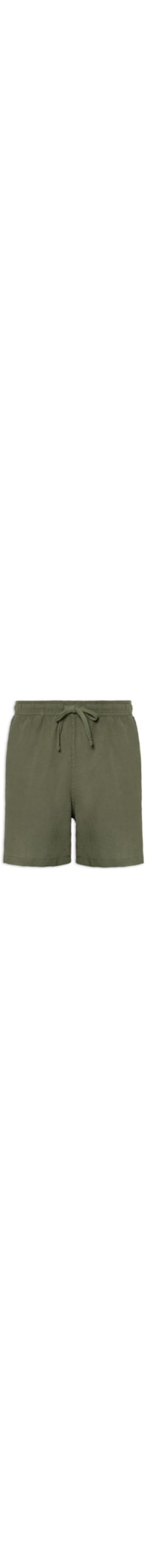 O short verde é confeccionado em linho sem elasticidade. A peça solta ao corpo possui cintura média, cós com elástico e cordão embutido para amarração frontal, bolso posterior com fechamento por aba e botão, tag da marca bordada na parte posterior, bolsos frontais embutidos e logo da marca bordado na parte frontal na altura da barra.