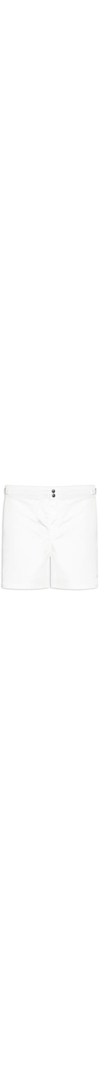 O short branco é confeccionado em tactel sem elasticidade. A peça solta ao corpo possui cintura média, cós com tiras e fivelas reguláveis, pences posteriores, bolso posterior com ilhós e fechamento por aba e botão de pressão, comprimento curto, nome da marca estampado em cor contrastante na parte frontal e fechamento frontal por botões de pressão.
