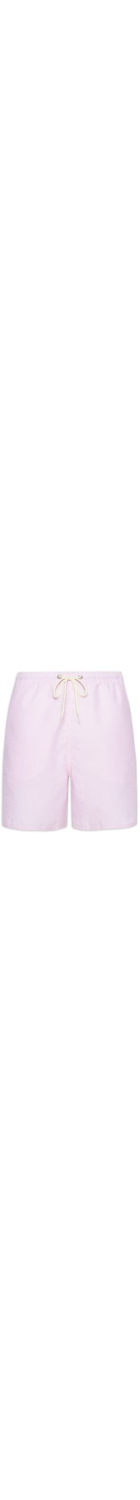 O short rosa é confeccionado por tecido leve sem elasticidade. A peça solta ao corpo possui cintura alta, elástico e cordão embutido no cós, bolsos frontais no modelo faca, tag da marca emborrachada aplicada na lateral, bolso posterior com puxador de gordurão, fechamento por velcro e ilhós aplicados, tag da marca aplicada no cós posterior, padronagem listrada em cor contrastante e comprimento curto.