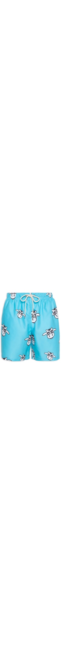 O short azul é confeccionado em nylon. A peça possui cintura média, cós elástico com cordão embutido para ajuste, bolsos frontais modelo faca, estampa figurativa em cores contrastantes, tag da marca aplicada na parte posterior, bolso posterior com detalhe de ilhós e fechamento por aba e velcro, caimento reto, shape solto e acabamento pepsontado.