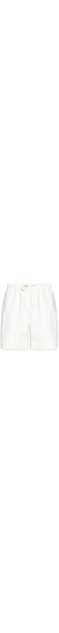 O short branco é confeccionado em tecido leve sem elasticidade. A peça solta ao corpo possui cintura média, cós com elástico e cordão embutidos para ajuste e ilhoses aplicados, tag da marca aplicada na parte frontal, bolsos frontais embutidos, bolso posterior com fechamento por velcro, comprimento curto, detalhes pespontados, e tag da marca aplicada na parte posterior do cós em cor contrastante.