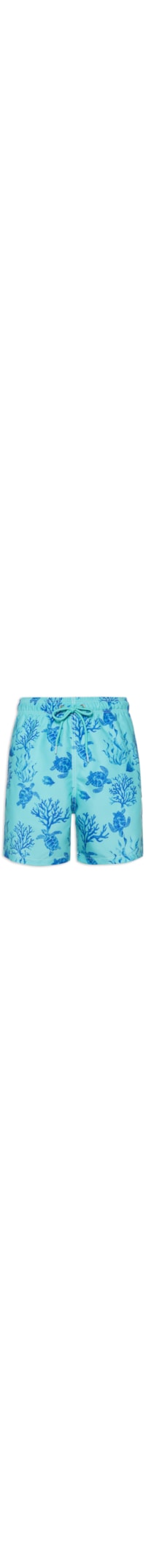 O short verde é confeccionado em tactel sem elasticidade. A peça solta ao corpo possui cintura baixa, cós médio com ilhoses de metal aplicados, elástico e cordão embutido para ajuste, dois bolsos frontais, um bolso posterior com fechamento por velcro, tag da marca e ilhoses aplicados na parte posterior, mix de estampas abstratas do fundo do mar em cor contrastante, forro, comprimento curto.