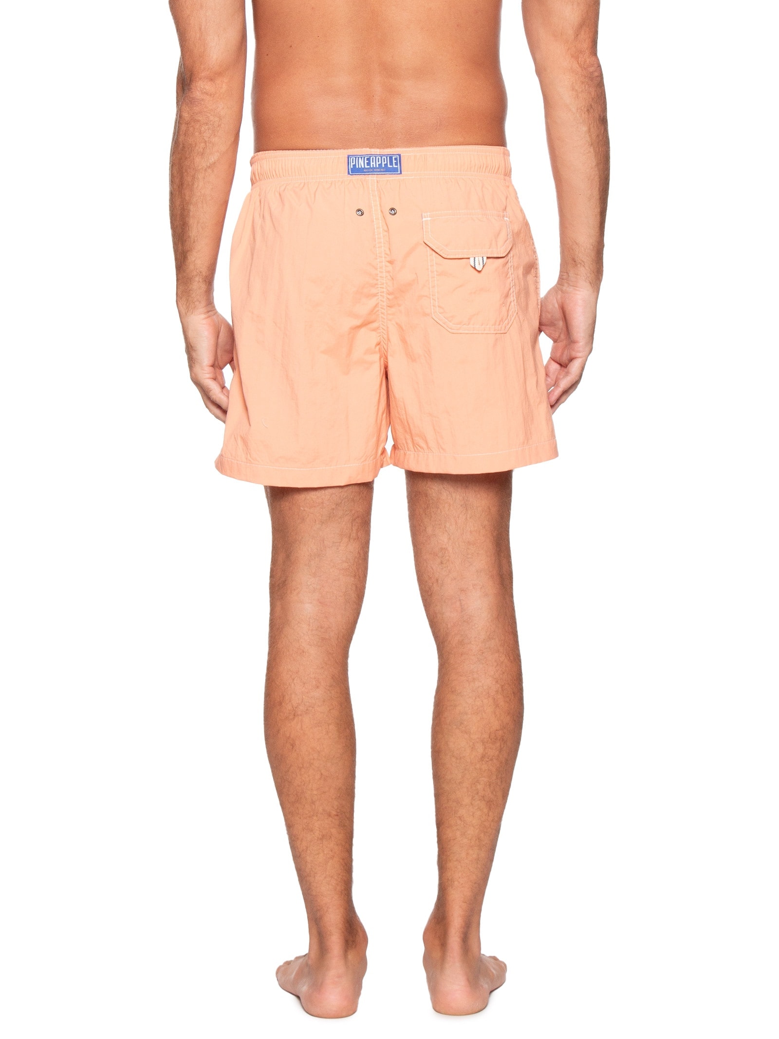 Os shorts lisos ganham evidência nas produções casuais desta temporada. Adoramos este da Pineapple combinado com uma camiseta bege e sandálias rasteiras claras para um visual divertido e moderno.