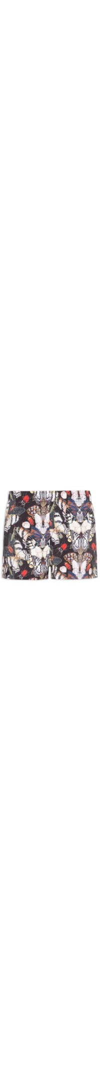 O short preto é confeccionado em tecido leve sem elasticidade. A peça possui cós com elástico embutido, estampa em cor contrastante, caimento reto, bolsos frontais embitidos, bolso posterior aplicado, comprimento curto e forro interno em mesh.